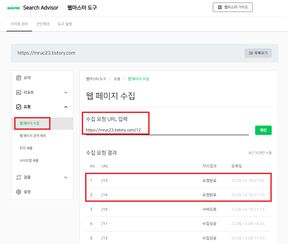 네이버에 티스토리 블로그를 등록했지만, 일반적으로 검색이 잘안되는 현상이 있다고 합니다.  네이버에서 웹 페이지 수집요청을 하면 해결이 될 수 있습니다.  아래의 방법으로 개선을 해보세요.