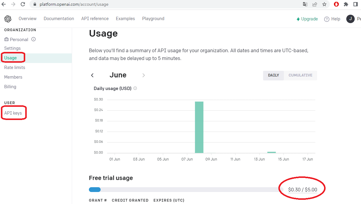 만약 사용량, 사용료가 많이 나온다면, open ai 사이트에서 아래의 이미지와 같이 api 사용량도 확인할 수 있고, 기존의 key 를 삭제하고 새로운 key 를 발급받을 수도 있습니다.