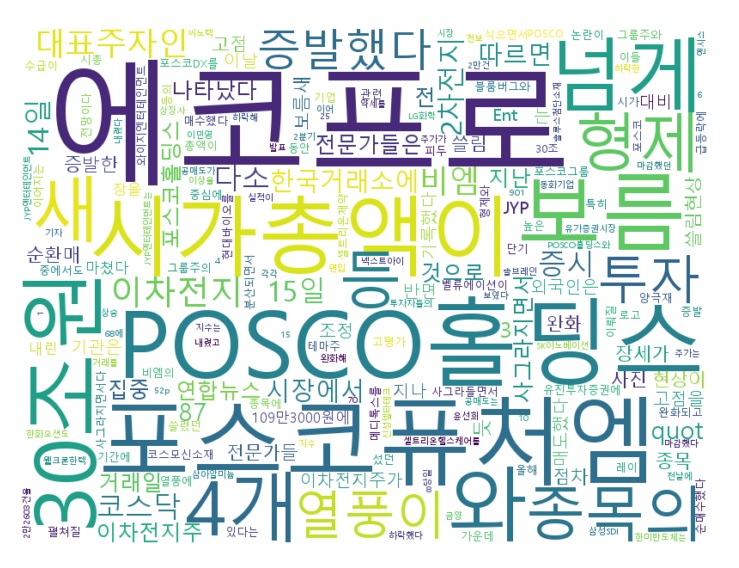 오늘의 에코프로 기사로 워드클라우드를 만들어서 시각화해보겠습니다.