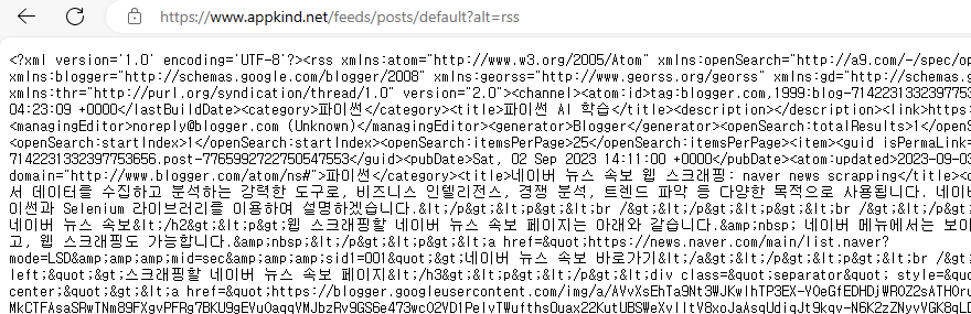 예) https://www.appkind.net/feeds/posts/default?alt=rss